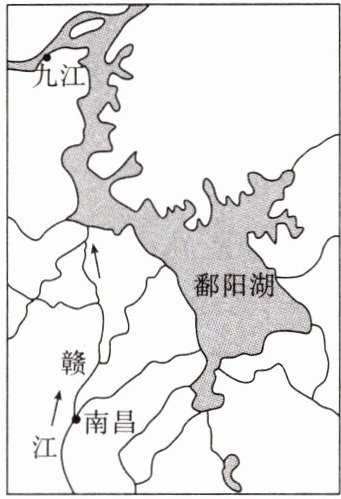 > 生态保护 近年来,随着鄱阳湖湿地生态环境逐年向好,鄱阳湖成了各种候鸟的聚集地。每年冬季,越来越多候鸟来此越冬,成为鄱阳湖冬日一道亮丽的风景。读鄱阳湖示意图,完成5~7题。