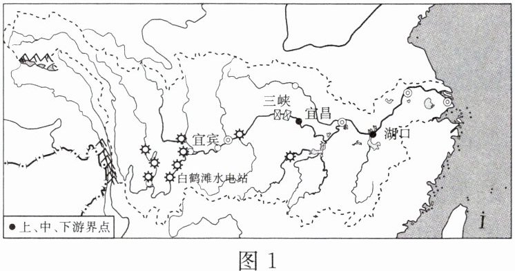 读长江流域图,完成1~2题。