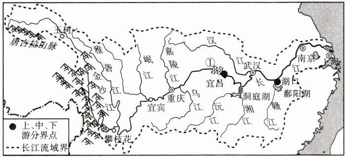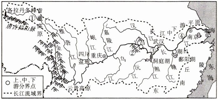 读长江流域图,结合所学知识完成3~4题。