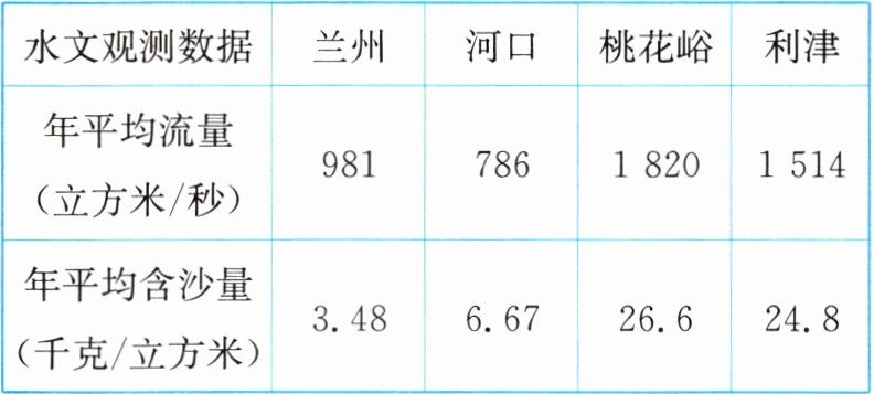 (2025·安庆)读黄河流域示意图和黄河四个水文站的数据资料表,完成8~10题。