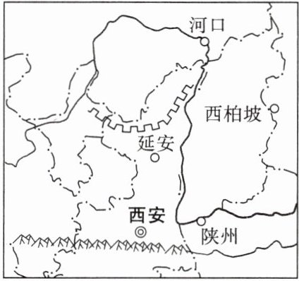 【典题1】(跨学科历史)延安和西柏坡都是我国的革命纪念地,保留了众多的革命遗址,是红色教育基地。读我国部分区域图,完成(1)~(2)题。