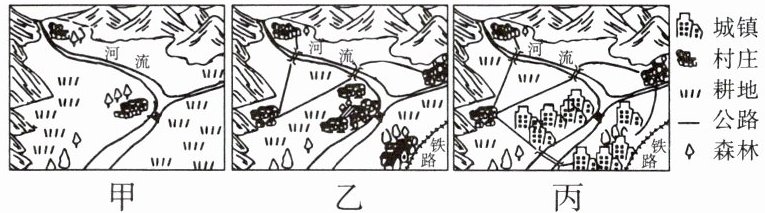 8. 由甲到丙反映出该地区耕地逐渐减少的原因是(