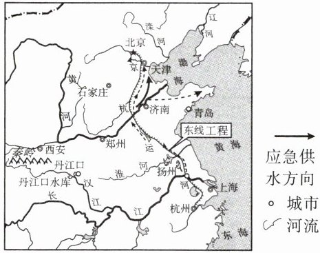 【典题 2】2021 年,南水北调东线一期北延应急供水工程正式向河北、天津供水。读南水北调东线示意图,完成(1)~(2)题。