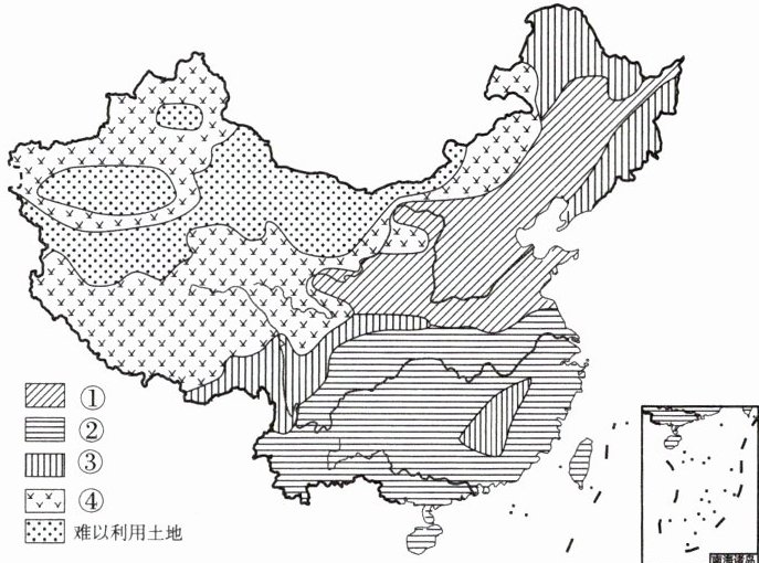 【典题 1】我国在大力发展经济的过程中,林地和草地的“碳回收”发挥了重要作用。下图为中国主要土地利用类型分布简图。读图,完成(1)~(2)题。