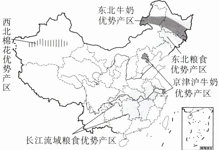 (2025·滁州)我们的祖国地大物博,粮丰畜肥。读中国农产品主要产区建设规划示意图,完成2~3题。