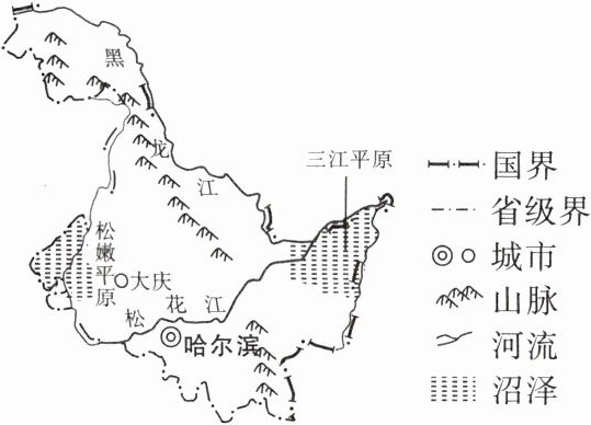 黑龙江省土地面积广阔,是我国推行“北斗+智慧农业”生产模式的试点省级行政区。该生产模式通过使用“北斗”和搭载“智慧大脑”的农机,可自动进行精准整地、播种、施肥、喷药、收割等作业。读黑龙江省地形分布图,完成6~8题。