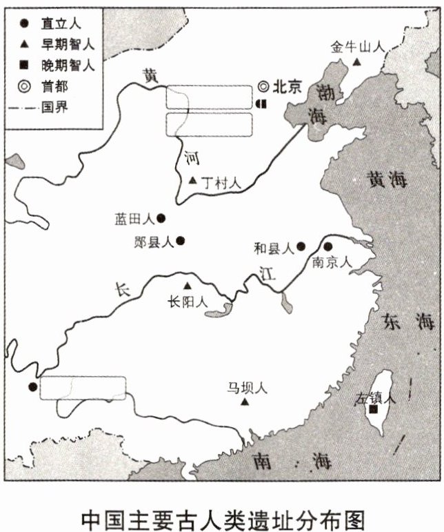 9. 结合《中国主要古人类遗址分布图》,按要求回答问题。
