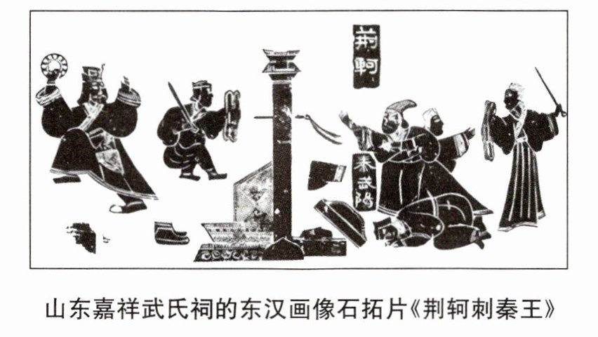 材料一 秦王发图,图穷而匕首见……(荆轲)乃引其匕首以擿(注:同“掷”)秦王,不中,中铜柱。秦王复击轲,轲被八创。轲自知事不就……于是左右既前杀轲,秦王不怡者良久。