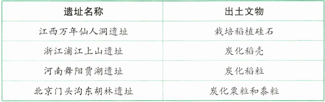 *8. 下表列出了考古发现的我国部分史前时期遗址出土的文物。这表明史前时期我国农业()