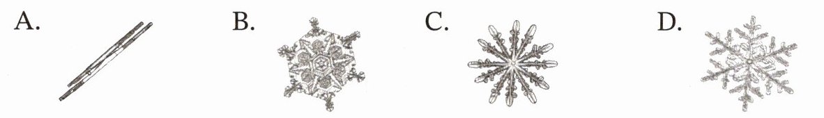 ) 50. Which of the following shapes is a needle-like snowflake?(