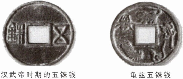 3. 考古专家在龟兹国遗址(古西域国之一)中发现了“龟兹五铢钱”。其外形酷似汉武帝时期的五铢钱,正面铸篆书“五铢”,背面铸龟兹文符号,故又称“汉龟二体钱”。这一文物可用于说明(