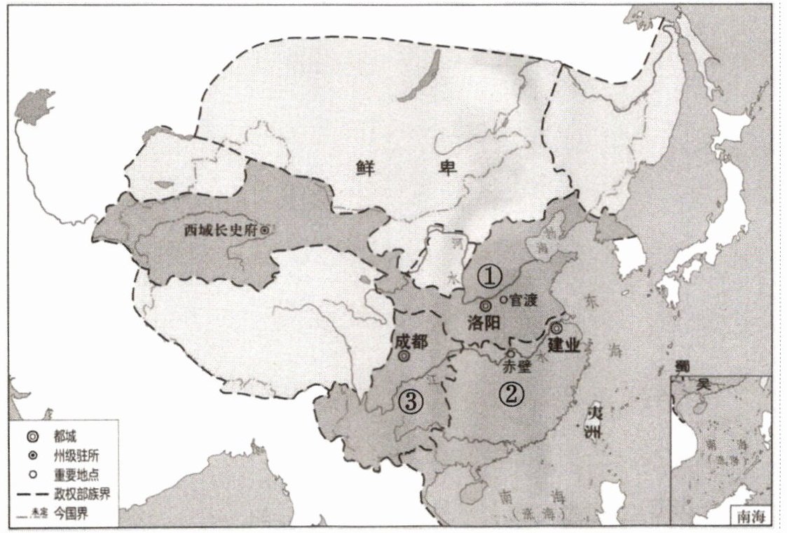 1. ①魏;②吴;③蜀(或蜀汉)。