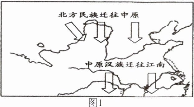 材料三 (如图 1)魏晋南北朝时期民族流动趋向