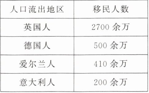 1. 观察下表,分析推动欧洲人这一时期移民美国的主要原因是(
