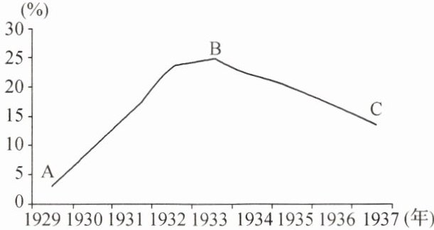 7. 下图反映了 1929—1937 年美国失业人数变化情况,促使 B 点到 C 点变化的直接有效措施是(