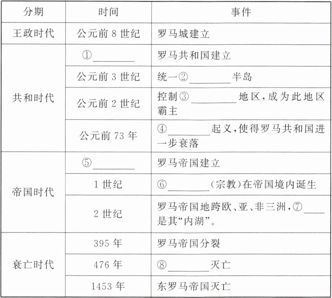 5. 结合所学知识,完成有关“古罗马发展史”的小结。