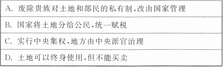 )|A. 废除贵族对土地和部民的私有制,改由国家管理|