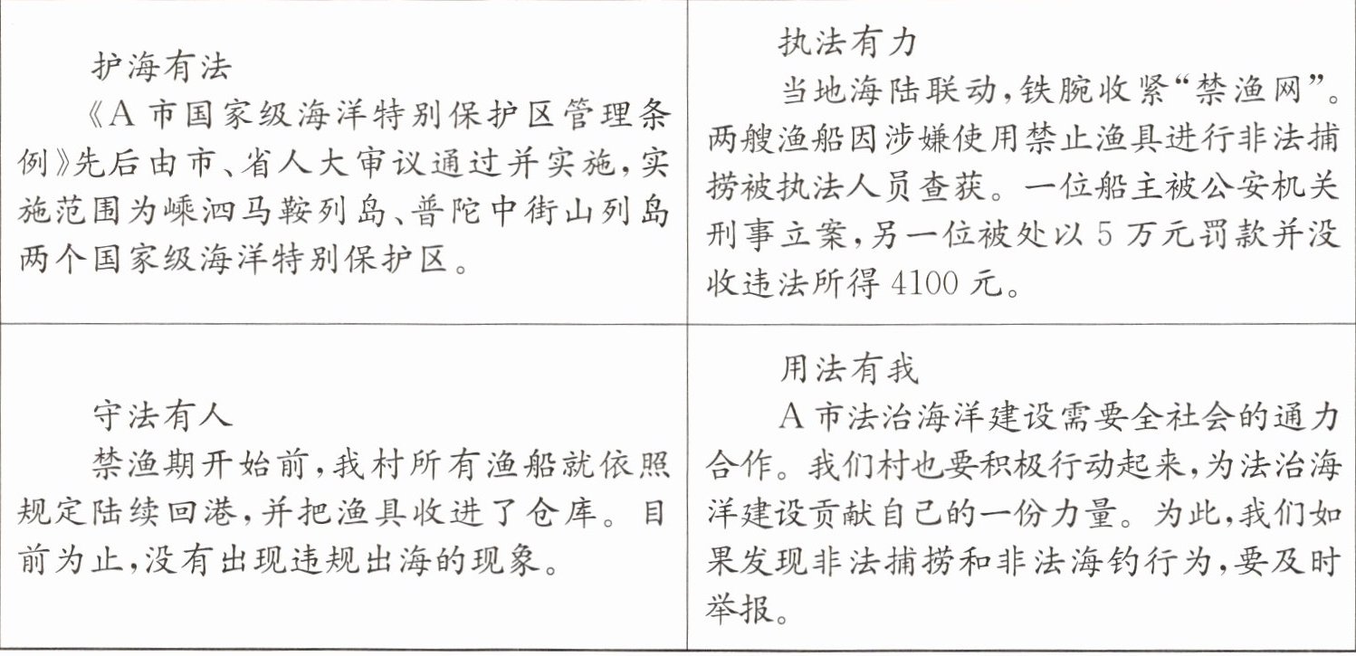 24. 共建法治海洋,增强法治意识。阅读 A 市某渔村的法治宣传栏内容,回答下列问题。