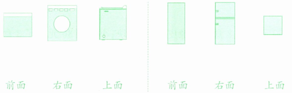 2. 从不同角度看一看洗衣机和电冰箱,连一连。