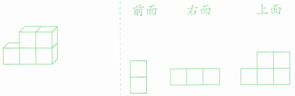 请你在方格纸上画一画从前面、右面和上面看到的图形。
