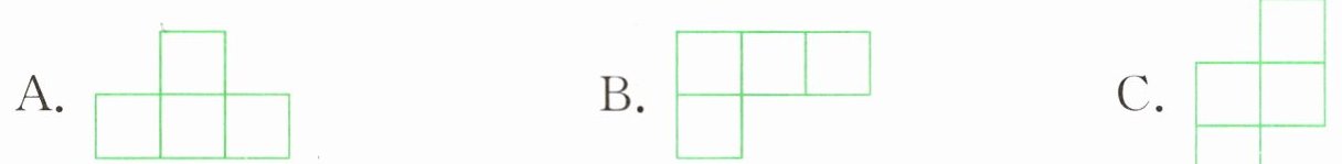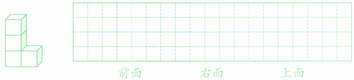 3. 用4个同样大的正方体摆成下面的物体。从前面、右面和上面看到的分别是什么图形?在方格纸上画一画。