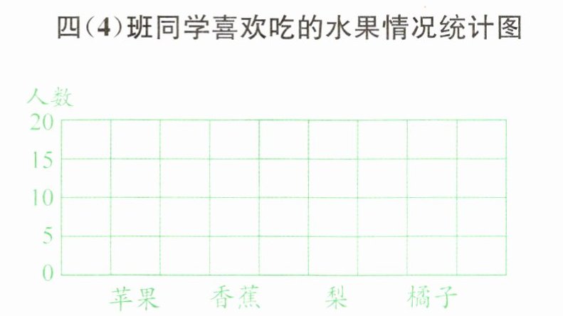 3. 快到六一儿童节了,为了给联欢会准备水果,四(4)班班委会统计了全班同学喜欢吃的水果的情况,制成了下面的统计表,已知每个人都喜欢吃苹果、香蕉、梨、橘子中的一种。