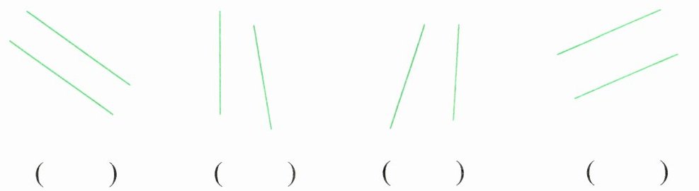 2. 下面的图形中,哪两条线段互相平行?用同一种颜色的笔描出来。