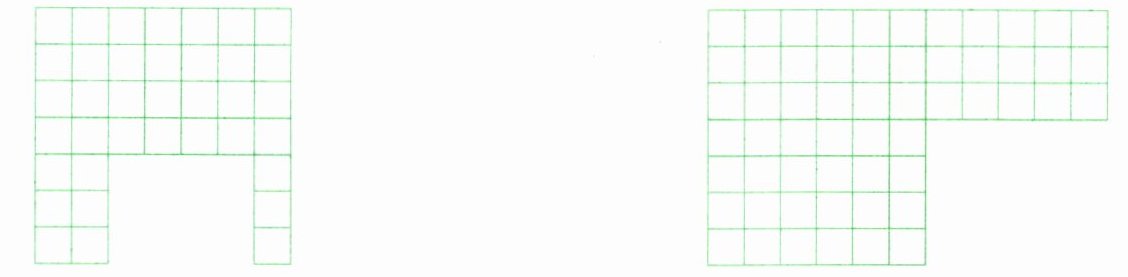 1. 将下面两个图形先分一分,再数出每个图形的面积。(每个小方格表示1平方厘米)