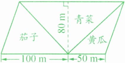 8. 如图,一块平行四边形地被分成三块种菜,一块种黄瓜,一块种茄子,一块种青菜。三块菜地各有多少平方米?