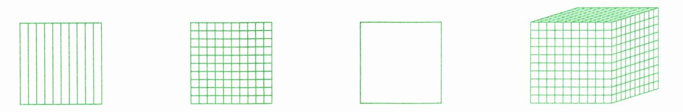 下面每个图形都表示整数“1”。选择合适的图形,分别涂色表示1、0.009、0.35、0.4,并在图下写出相应的小数。