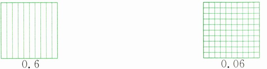右边大正方形平均分成100份,涂色其中6份表示0.06。