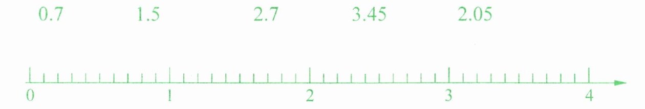 2.7:在2和3之间,靠近3,距离2有7个0.1的小格处描点。