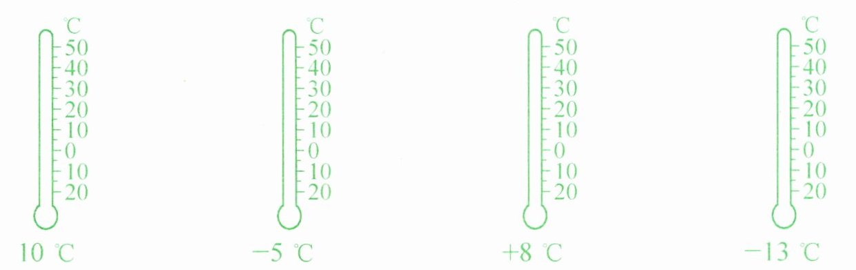 对于$-13^{\circ}C$:从温度计$0^{\circ}C$刻度线向下数$13$个小格进行涂色。