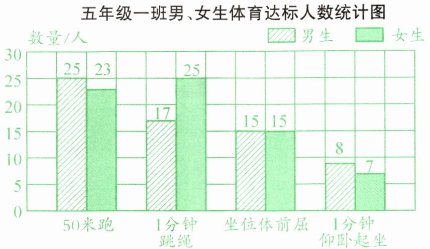 1. 下面是某校五年级一班男、女生体育达标人数统计图。