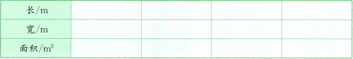 |面积/$m^2$|$8×1 = 8$|$7×2 = 14$|$6×3 = 18$|$5×4 = 20$|