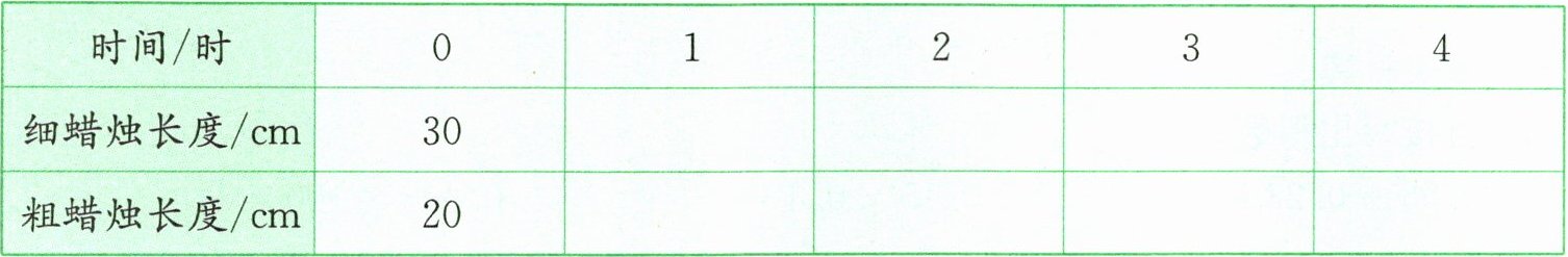 1小时粗蜡烛燃烧的长度:$20÷4 = 5$(厘米)