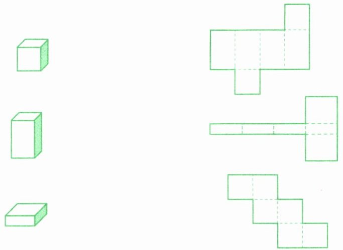 2. 把下面的长方体、正方体和相应的展开图用线连起来。