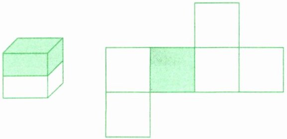 一个正方体纸盒(如图),将它的上半部分涂色,然后把纸盒展开,请你在展开图上把涂色的部分画完整。