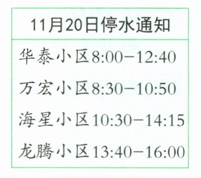 任务背景:你作为社区物业管理员,需要根据停水通知表解决小区居民的紧急问题。