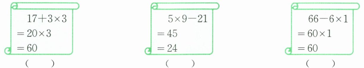 2. 下面的计算对吗?对的在( )里画“√”,错的画“×”并改正。