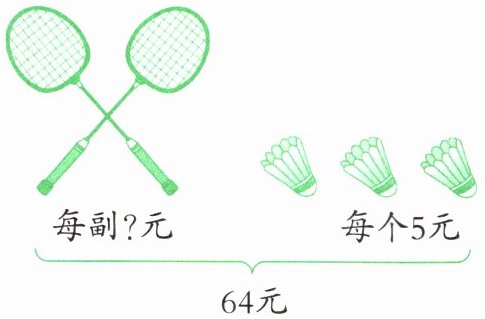 64 - 5×3=64 - 15=49(元)