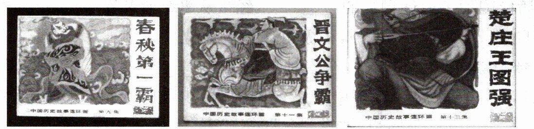 本题三则材料涉及影视作品、连环画、历史文献,从不同角度反映了春秋时期诸侯争霸这一主题。周平王东迁以后,东周开始,周王室衰微,只保有“天下共主”的名义,而无实际的控制能力。中原各国社会经济条件不同,诸侯间争夺霸主的局面出现了。各国的兼并与争霸在给百姓带来灾难的同时,也在客观上推动了各个地区的局部统一。