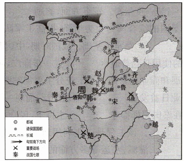 (1)根据《战国形势图》,在图上圈出七个诸侯国,并指出这些诸侯国的大致地理方位。
