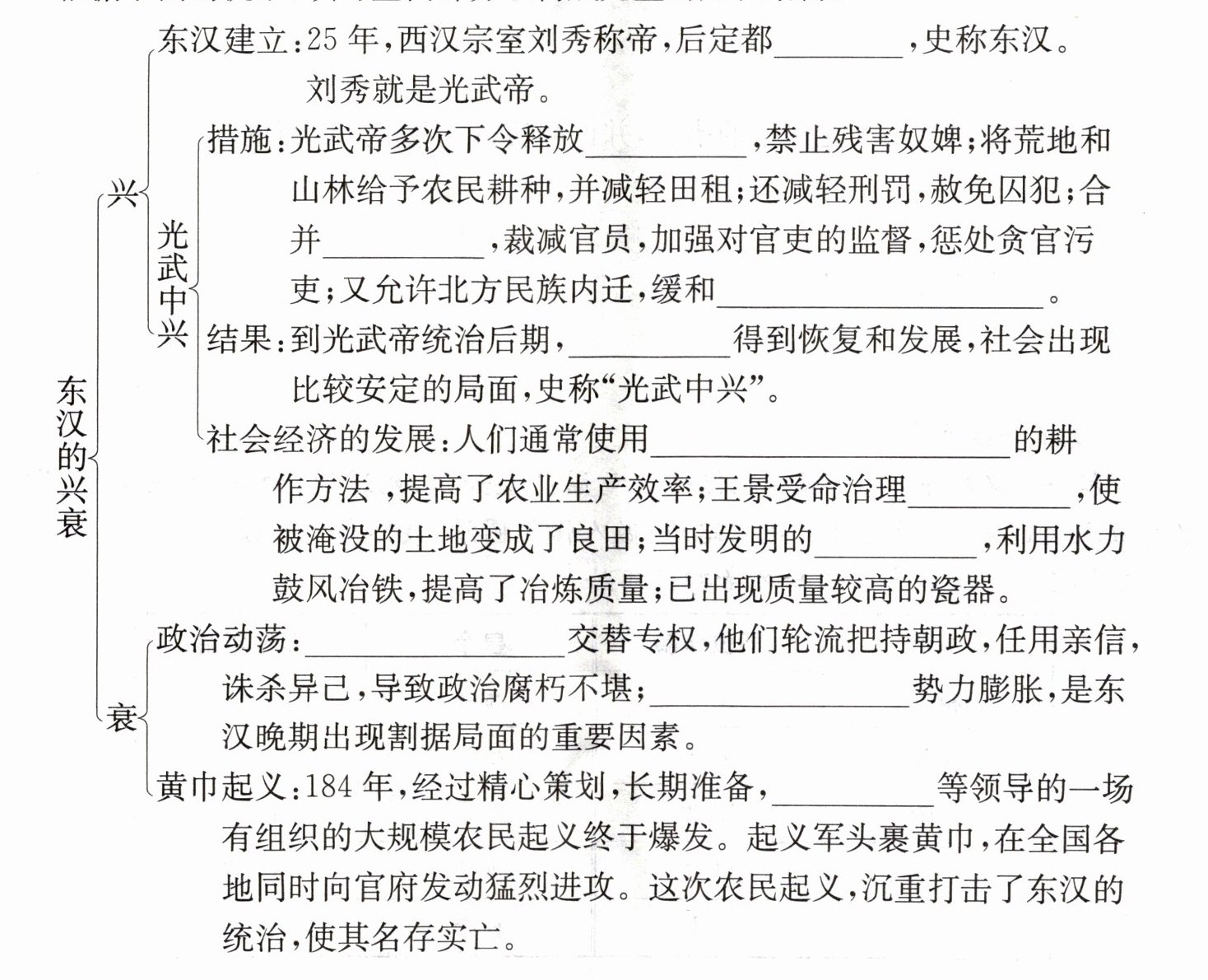 洛阳;奴婢;郡县;民族矛盾;经济;二牛一人一犁;黄河;水排;外戚和宦官;豪强大族;张角。