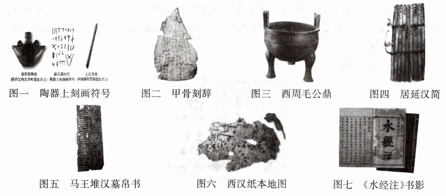 (1)书写材料的演变过程:① ____,② ____,③ ____,④ ____,⑤ ____,⑥ ____。