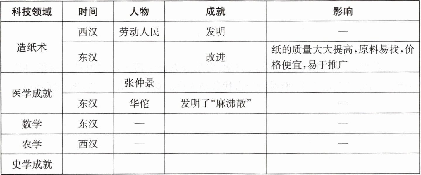 | |东汉| |改进|纸的质量大大提高,原料易找,价格便宜,易于推广|