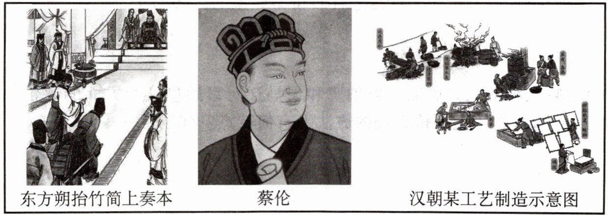 (1)造纸术。① 轻便,相比竹简便于书写、携带等。② 经济,原材料便宜,易得。(言之有理即可)(2)提问只要围绕纸的发明相关的问题,具有思维价值,表述清晰正确即可。提示:博物馆、专业研究所、影片、文字记录、互联网等。(3)张仲景写成《伤寒杂病论》、华佗发明“麻沸散”等。国家统一、经济繁荣促进了科技创新;我们要以古人为榜样,努力学习,为祖国的科技发展作贡献。(言之有理即可)