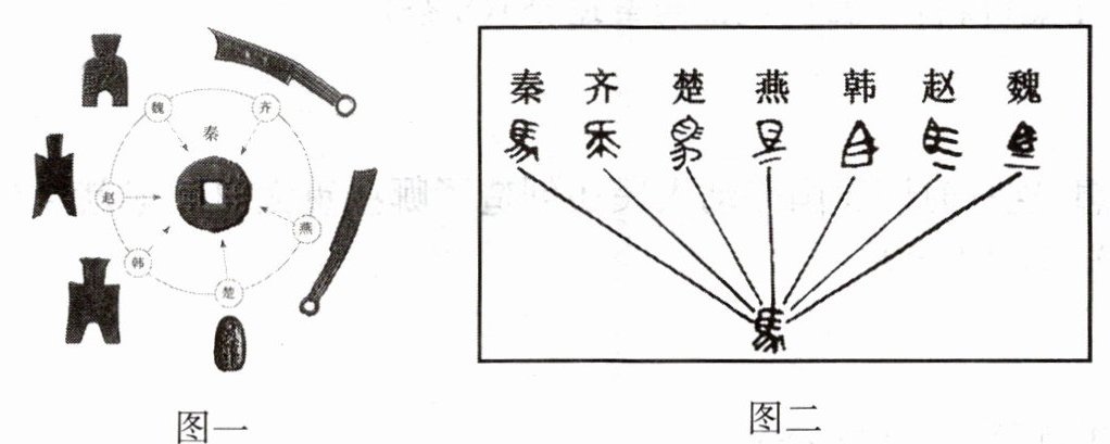 (1)材料一中的图一为秦统一货币图,秦始皇规定在全国统一使用的货币是______;图二为秦统一文字图,秦始皇把______作为通用文字颁行全国。秦始皇为加强中央集权在地方上推行了什么制度?为加强思想控制,他采取了什么措施?(10 分)