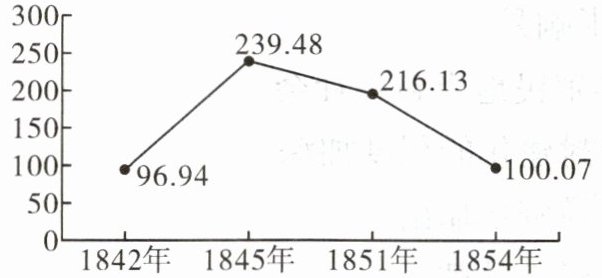 14. 下图为《1842—1854年英国输华货物总值变化示意图》(单位:万英镑),该图所示现象有助于我们理解( )