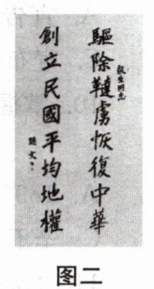 (2)图二的纲领中,孙中山提出的核心目标是什么?与之相应的是三民主义中的哪一主义?(4 分)